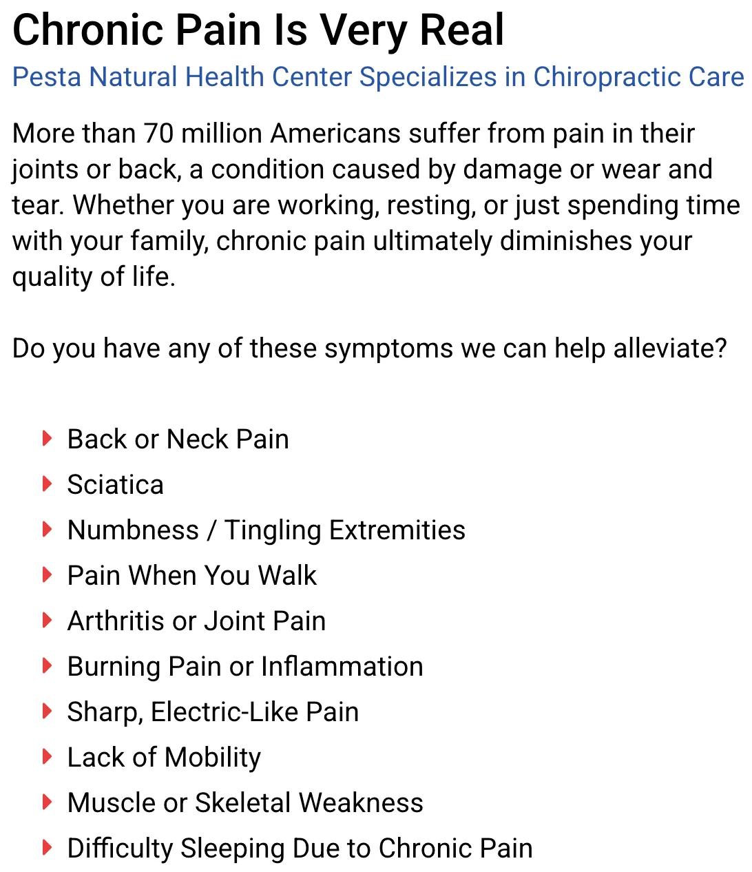 Dr. Pesta is a chiropractor in Centennial, Colorado, with over 25 years of experience. He and his team focus on natural, supportive care and personalized wellness plans to help people feel and function their best.